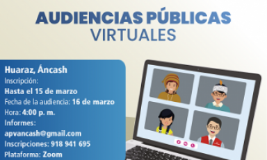 Durante la audiencia pública virtual, la Contraloría presentará los principales resultados del control gubernamental en la Provincia de Huaraz durante el 2020. Para mayor información del evento pueden comunicarse con el número telefónico 918 941 695 o escribir al correo electrónico  apvancash@gmail.com.