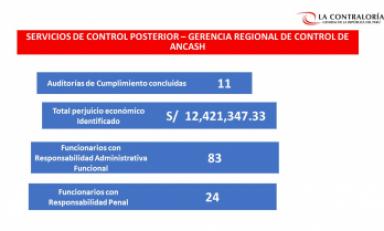 Otro dato resaltante es que las malas decisiones en gestión y empleo de los recursos han ocasionado un perjuicio de S/12, 421, 347.33, donde a la fecha tan solo 83 funcionarios han presentado responsabilidad administrativa funcional y de ello solo 24 tienen alguna responsabilidad penal.