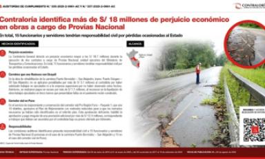 Contraloría identifica más de S/ 18 millones de perjuicio económico en obras a cargo de Provías Nacional