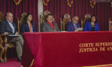 Seguidamente se cumplió la inauguración de la actividad, a cargo del doctor Dwight Guillermo García Lizárraga, titular de la CSJAN, quien resaltó que los alcaldes escolares y los jueces de Paz escolares ayudan a la disminución de los conflictos dentro de las aulas a través del dialogo y la conciliación a efectos de fortalecer la cultura de paz.