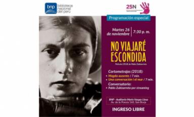 Huaraz en Línea.- En el marco del “Día Internacional de la Eliminación de la Violencia Contra la Mujer” que se conmemora el 25 de noviembre de cada año, la Biblioteca Nacional de Lima – BNP, será sede de la proyección de producciones audiovisuales (dos cortometrajes y un largometraje).