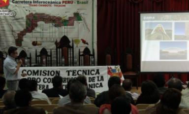 Así el tema sobre la importancia del Proyecto de Carretera Perú – Brasil, por las rutas Chimbote y Trujillo – Tocache, estuvo a cargo del Lic. Hugo Tapia Sifuentes, Coordinador General de la Comisión Técnica Central.