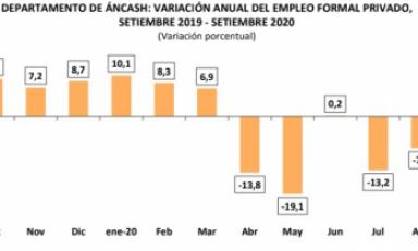Huaraz en Línea.- El empleo en el sector privado formal en el departamento de Áncash registró una disminución de 4,6% en setiembre de 2020, respecto al mismo mes del año anterior. En términos absolutos, esto significó una reducción considerable de 3 mil 180 puestos de trabajos formales. Así informó el Observatorio Socio
