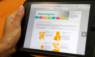 Como se sabe, ‘Alerta Registral’ es un servicio gratuito que ofrece la Sunarp en su página web a través del cual se alertará al titular registral inscrito al servicio, a través de correo electrónico y mensaje de texto a su celular, cada vez que se presente ante una oficina de la Sunarp un acto que este no haya realizado, ya sea por un documento falso o suplantando su identidad.