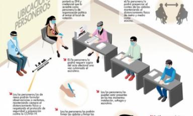 -Los observadores electorales deben de mantener un metro y medio de distancia entre ellos, así como con las personas a las que consulten.
