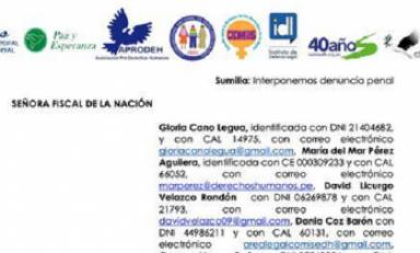 En el oficio enviado a Zoraida Ávalos se detallan los hechos ocurridos el pasado 11 de noviembre en una de las marchas convocadas por la ciudadanía, en las que se usó gases lacrimógenos y perdigones para replegar a la población.
