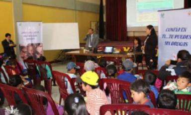 Huaraz en Línea.- En el marco del programa de prevención de consumo de drogas Devida y la Municipalidad Provincial de Huaraz desarrollaron una charla de fortalecimiento y prevención del consumo indebido de sustancias adictivas en el colegio “Jorge Basadre Grohmann”, donde se presentó el resumen de acciones ejecutadas dentro del plan anual del 2016.