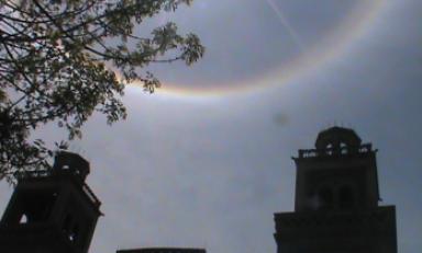 Huaraz en Línea.- Un domingo diferente. Los pobladores de la ciudad de Huaraz se vieron sorprendidos con la aparición de dos halos concéntricos rodeando al astro rey.