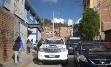 Un gran contingente de la Policía se desplaza intensamente por las principales calles de la ciudad así como la custodia de establecimientos públicos como la Gobernación y la Municipalidad provincial de Huaraz.
