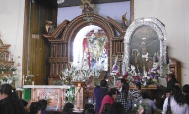 Huaraz en Línea.- La sagrada imagen del Cristo Morado pernoctó en el hospital de Huaraz y luego se dirigió hacia el santuario del Señor de la Soledad.