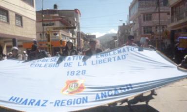 Huaraz en Línea.- El pleno de la comunidad educativa del colegio emblemático de La Libertad de Huaraz salió a las calles a protestar por la pronta entrega de los locales escolares en favor de los miles de estudiantes ancashinos.