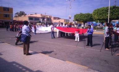 Como medida de protesta, el alcalde, sus regidores y funcionarios hicieron el acto simbólico del lavado de la bandera provincial ante el incumplimiento de la responsabilidad social por parte de la Compañía Minera Antamina.