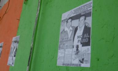 En los afiches se nota la imagen de Víctor Valdivia con el ex presidente regional César Álvarez Aguilar y como texto se lee no a la movilización, no al paro.