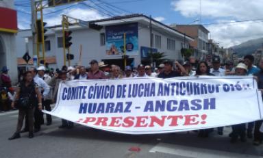 En el mitín de protesta del comité de lucha anticorrupción, Mario Alvarado Soto hizo uso de la palabra destacando la presencia de los diferntes gremios en esta medida de protesta, a pesar de que se programo otra actividad, como un acto de provocación. Por su parte Victor Valdivia , presidente de este comité, dijo que era momento de no permitir la ingobernabilidad en Áncash, la necesidad de exigir la ejecucion de obras y el cumplimiento de las promesas electorales del gobernador regional.