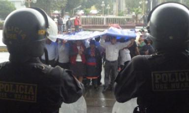 Huaraz en Línea.- Los trabajadores de limpieza, parques y jardines cumplieron con realizar un plantón en protesta por el recorte de sus derechos y beneficios laborales.
