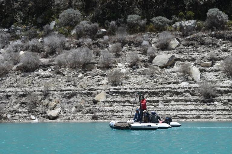 Otro grupo de científicos trabajó directamente sobre las lagunas Parón y Artesoncocha, extrayendo muestras de sedimentos de la profundidad y los bordes de las lagunas, con la finalidad de obtener información para conocer el cambio de clima en el pasado y la influencia de las actividades humanas en el proceso del cambio climático.