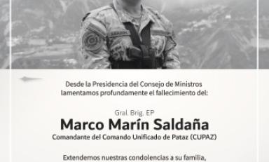 También la Presidencia del Consejo de Ministros (PCM) expresó su profundo pesar por el fallecimiento del general Marco Marín Saldaña, comandante del Comando Unificado de Pataz.