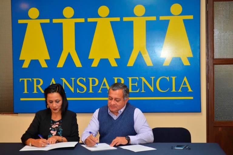 La firma de este importante convenio estuvo a cargo y por parte de transparencia de Gerardo Távara Castillo, secretario general de esta institución; y de Mónica Gismondi, directora periodística de Perú en Línea.