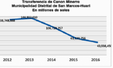 Huaraz en Línea (Por Edgar Herrera T.).- En los últimos cinco años los gobierno locales de Ancash, han recibido por canon minero 2 mil 594 millones 911 mil 507 soles. De acuerdo a la distribución fijado por Ley, la Municipalidad Distrital de San Marcos en la Provincia de Huari, es la que más monto ha recibido. Un total de 495 millones 488 mil 961 soles. Es así que, la municipalidad en la zona sierra de Ancash, que mayor canon recibe es, San Marcos.