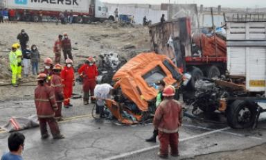 Huaraz en Línea. - El choque frontal de dos vehículos pesados provocó que uno de ellos se incendie y los conductores mueran de manera instantánea en la carretera Panamericana Norte, a la altura del asentamiento humano Atahualpa, en Nuevo Chimbote.