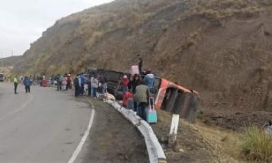 Huaraz en Línea. – Un pasajero fallecido y siete heridos dejó como saldo la volcadura de un bus interprovincial en el kilómetro 156 de la carretera Pachacoto-Catac.