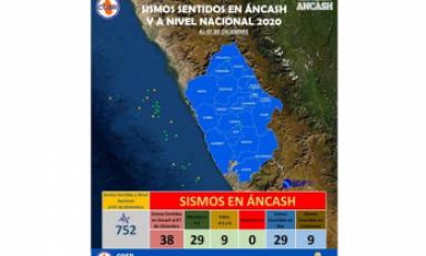 Huaraz en Linea.- El Centro de Operaciones de Emergencia Regional (COER) Áncash informó hoy que, en lo que va del 2020, se se han reportado 38 sismos en la jurisdicción.