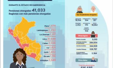 Durante este período, se ha pagado a los 20 867 pensionistas de la región según el cronograma de pago de pensiones sin sufrir ninguna variación y en los meses de julio y diciembre se abonaron las pensiones adicionales correspondientes. En enero del 2021 se pagó la retribución extraordinaria de S/930 a 560 mil de nuestros pensionistas y beneficiarios del Sistema Nacional de Pensiones.