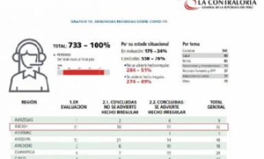 Huaraz en Línea. – La región Áncash reportó 32 denuncias ciudadanas presentadas ante la Contraloría General de la República durante la emergencia sanitaria, 11 de ellas fueron concluidas advirtiéndose hechos irregulares, en tanto que otras 10 fueron concluidas sin evidenciarse este tipo de observaciones. La diferencia, hasta el 14 de julio, se encontraba en evaluación.