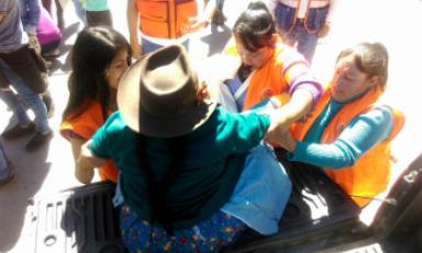La población del asentamiento humano afincados en el mismo margen del Malecón Sureste del río Quillcay participó del simulacro con un recorrido de 15 minutos hasta la zona segura en el Sport Soledad, en donde 25 familias tomados de sus “bolsas de emergencia” que contenían alimentos tradicionales no perecibles como trigo, cancha, punky, hoja de coca, entre otros; resaltaron los bordados del slogan motivador “Si Palcacocha viene solo será de visita, nosotros estamos preparados”.