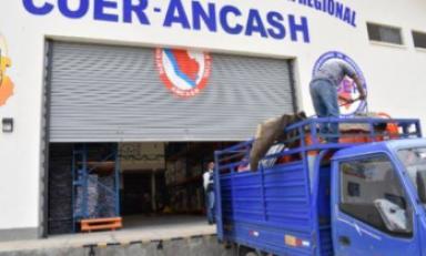La ayuda humanitaria partió del almacén de avanzada del Gobierno Regional de Áncash y consistió en camas plegables, colchones, frazadas, bobinas de plástico, implementos de cocina y menaje.