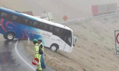 Huaraz en Línea.-El susto de sus vidas pasaron los pasajeros que iban a bordo del bus interprovincial Turismo Andino, al momento de que el vehículo patinara y por poco cae a un abismo en el serpentín de Pasamayo.