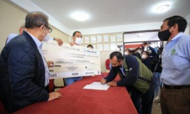 Morillo Ulloa entregó el cheque a Dionisio Norabuena, representante de una de las 52 instituciones ganadores que presentaron sus propuestas productivas para ser cofinanciadas a través de Procompite, y resaltó la importancia de planes de negocio como este, que ayudarán a sacar adelante la economía ancashina.
