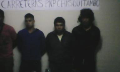 Tras reducir a sus ocupantes, la policía pudo identificar plenamente a los sujetos Kevin Espinoza Melgarejo (21), Erick Bryan Puntilla Laureano (18), Deyvis Vladimir Paez Pardo (25) y Fredy Richard Cueva Manrique (21).