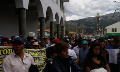 Huaraz en Línea.-En el mismo día de convocatoria de medida de lucha contra gestión del gobernador regional de Áncash, un grupo de pobladores llegaron a la plaza de armas de Huaraz, para manifestar su respaldo al gobernador regional Waldo Ríos Salcedo, actitud que fue tomada como un acto de provocación contra los manifestantes convocados por el Comité de lucha Anticorrupción.