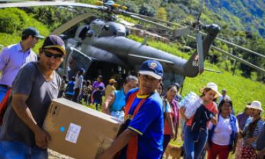 Huaraz en Línea.- Las Fuerzas Armadas en coordinación con el Ministerio de Justicia y Derechos Humanos realizaron un total de 381 vuelos en helicópteros y trasladaron 198.5 toneladas de ayuda humanitaria, entre alimentos, agua, víveres y donaciones, informó el Centro de Operaciones de Emergencia Nacional (COEN).