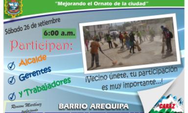 Según se informó esta campaña que lleva como lema "Mejorando el ornato de la ciudad" se iniciará en el Barrio de Arequipa, este Sábado 26, a partir de las 6 de la mañana y estará encabezada por el alcalde Renson Martinez, quien estará acompañado de los gerentes y trabajadores de la comuna.
