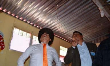 Para comprobar el verdadero estado del colegio Vargas Barrenechea hizo un alto a la reunión y en compañía del burgomaestre se dirigió hasta los ambientes del plantel, donde verificó el estado en el cual los estudiantes vienen desarrollando sus labores educativas.