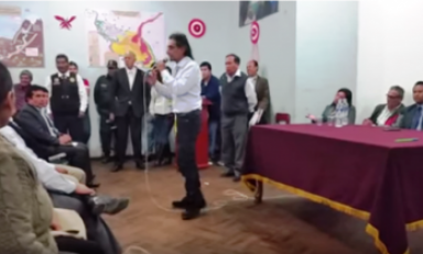Previo a ello señala ante el auditorio colmado por pobladores de la zona: "yo pregunto para que han presentado su curriculo...si al final dicen yo quiero concurso, entonces señores eso es el pueblo, tenemos que entender que eso es así", repite ante el pedido de algunos de los asistentes que piden concurso para la elección del nuevo funcionario.