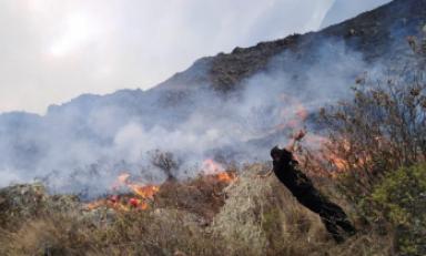 Huaraz en Línea. - El incendio forestal en el caserío de Coltao, en el distrito de Pira, provincia de Huaraz, que se inició el 24 de noviembre a las 8 p.m. se extinguió 24 horas después.