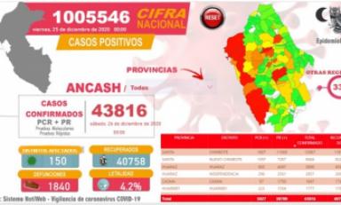 Según los reportes oficiales, de los 166 distritos de Áncash 150 se han infectado de la Covid-19 y a la vez se han recuperado 40 mil 758 pacientes.