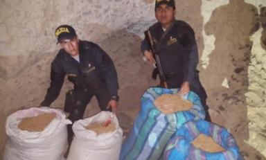 La droga había sido camuflada en una cueva, pero los policías por acciones de inteligencia descubrieron que sujetos dedicados al tráfico de drogas iban a trasladar este cargamento a Chimbote.