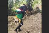 Dos policías cargan a anciana enferma para que reciba atención médica en Áncash