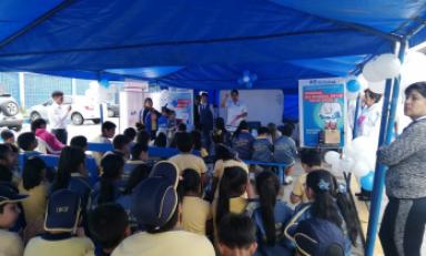 Los escolares son integrantes de la institución educativa Señor de la Vida, del distrito de Nuevo Chimbote, a quienes se les brindó consulta odontológica, despistaje de caries dental, procedimiento de fluorización y se les obsequió cepillos e hilos dentales, con la finalidad que mantengan una buena limpieza oral y se eviten enfermedades.