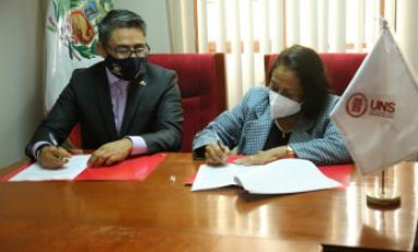 En la celebración del convenio interinstitucional participaron la máxima autoridad de la UNS, Dra. América Odar Rosario; y el jefe Operativo Zonal Áncash Chimbote del V Censo Nacional Económico-INEI, Mag. Eli Álvarez Reyes.